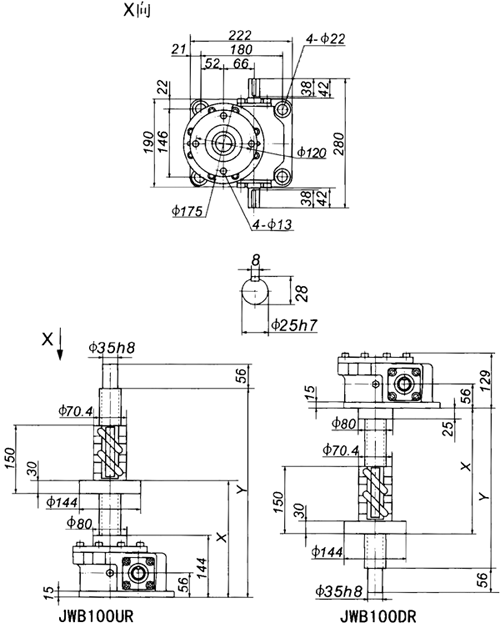 JWB100滾珠絲杠升降機結構形式及安裝尺寸
