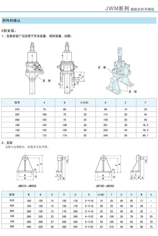 減速機|蝸輪絲桿升降機-JWM絲桿升降機附件的確認-C型安裝-海洋傳動